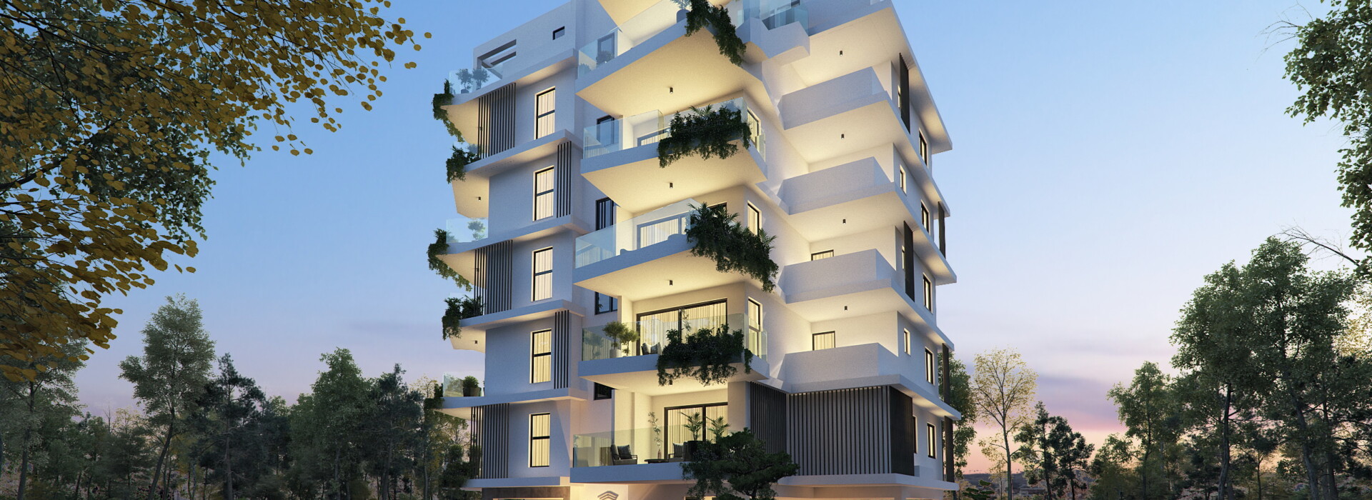 The project boasts eleven apartments in total 3 one bedroom & one bathroom on the first floor and eight two bedroom & two bathroom apartments on rest of the floors- all with spacious and contemporary living areas. There are two apartments per storey (except from 1st floor where are three one bedroom apartments) – ensuring optimum privacy for potential buyers. The five floor apartments benefit from individual private and luxury roof-gardens with amazing views of the lovely Neighbourhood. Each apartment has one parking bay and a storage room on the ground level.