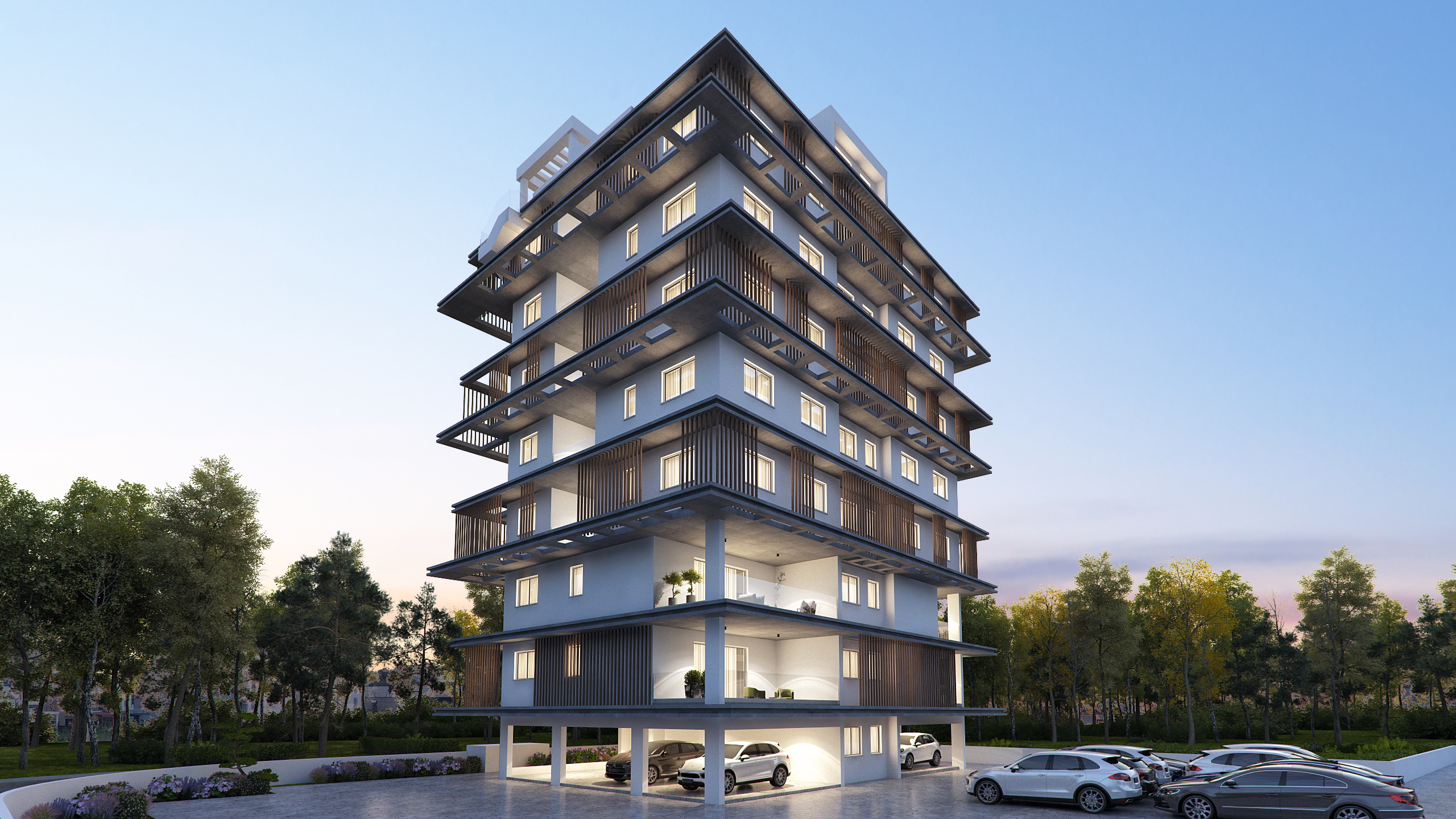 The project consists of 15 modern apartments with smart layouts. The 1st and 2nd floors feature 1-bedroom apartments, while from the 3rd to the 7th floor, there are two independent apartments per floor. The 7th-floor units enjoy private roof gardens with provision for jacuzzis.